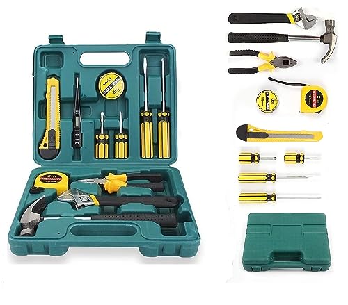 12 in 1 Electrical Repair Home Hand Tool Kit Set With Screwdriver, Hammer, Measuring Tape, Wrenches, Cutter & Pliers All Accessories Hardware Tool box Mechanical Garage Tool Storage kit Emergency Uses
