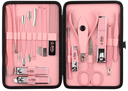 Beauté Secrets Luxury Nail Cutter Set, 18 Pieces Grooming Kit (Eyebrow Razor, Tweezer, Hair Plucker, Baby Nail Cutter, Ear Cleaner,Nail Cleaner,) Pedicure Gift for Men and Women (Pink)