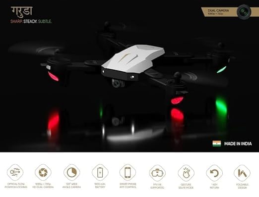Best Features: Foldable Drone, Wifi Camera, 720p Camera, 360° Flip, Headless Mode, Altitude Hold, One Key Take Off/ Landing.Camera – Yes, Flying Height – Upto 50 mtrs, Flying Time – 30 min, Weight – 0.410 Kgs.