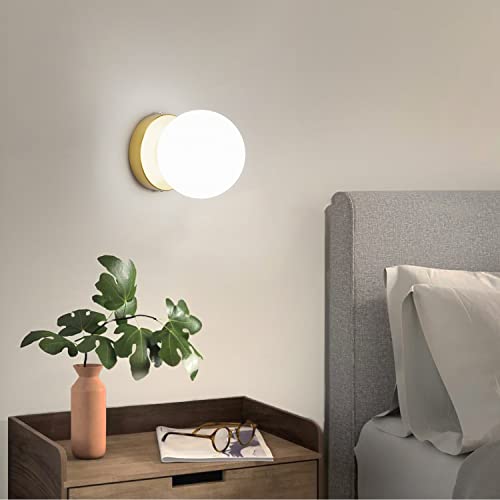 Improvhome Gold Wall Sconces Set of Two Modern Globe Wall Light Fixture Gold Sconces for Bedroom Living Room Bathroom Hallway Stair (Exclude Bulb) (Pack of 1)