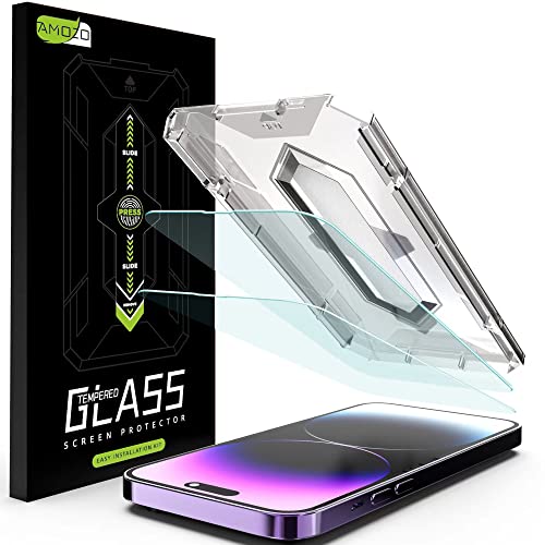 Amozo Easy Fit Tempered Glass Screen Protector Guard for iPhone 14 Pro Max (with easy applicator) – Pack of 2