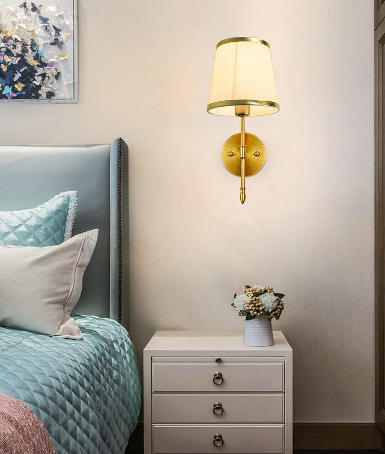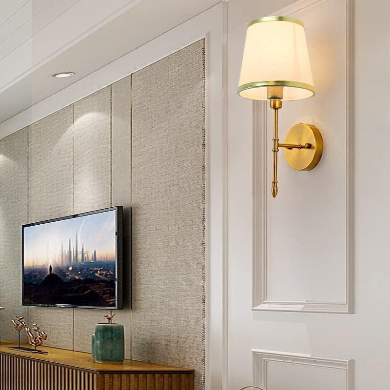CITRA Wall Light Wall Sconce Light Fixture – Brushed Brass with Fabric Shade