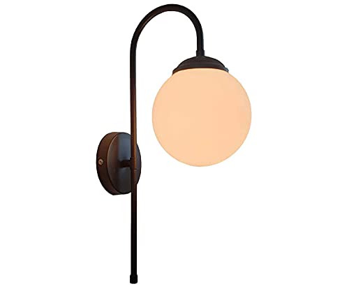 CRAFTSDEC White Glass Modern Design 1 Glob Shape Sconces Brass Antique Frosted E27 Holder LED Decorative Wall Lamp with LED Color Changing Bulb-White, Warm White and Neutral White