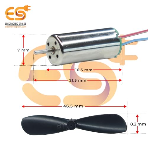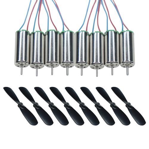 When you install the propeller, press and hold the back of the motor to prevent damage to the motor. Package Include 8 x Motor, 8 x Propeller (2xCW and 2xCCW). Voltage: DC 3.7V; Current: 0.8A; RPM: 55000;Motor diameter: 7mm, Motor length: 16mm;ropeller length: 45mm, One propeller is CW and other is CCW;Package Include 8 x Motor, 8 x Propeller (2xCW and 2xCCW); Note: when you install the propeller