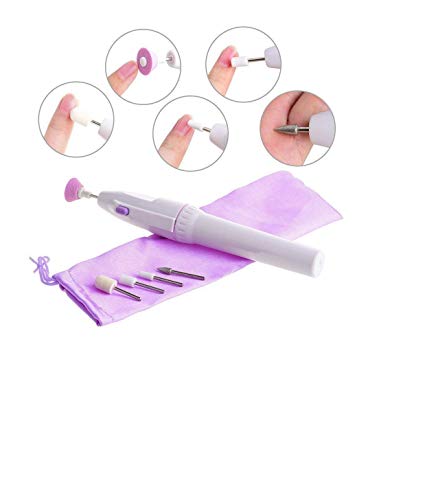 Easily handheld, Functions of five attachments: diamond cone: removes dead skin, corns and calluses. Grinding barrel: flatten and smooth extra thick nails and rippled surfaces. Small grinding cone: carves into corners and hard to reach spots. Soft felt cone: polishes nails to a healthy shine, also use it to push back cuticles and stimulate nail bed circulation for increased nail growth. Flat emery head: professionally shapes nails and finishes them to a smooth gentle edge. Package includes: 1 x salon shaper. 5 x attachments.