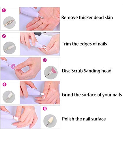 Exseson Nail Trimming Kit Salon Shaper Manicure Pedicure Kit 5 In 1 Art Tip Electric Nails Polish Grooming Tool Kit Nail Grinder Drill Machine (White)