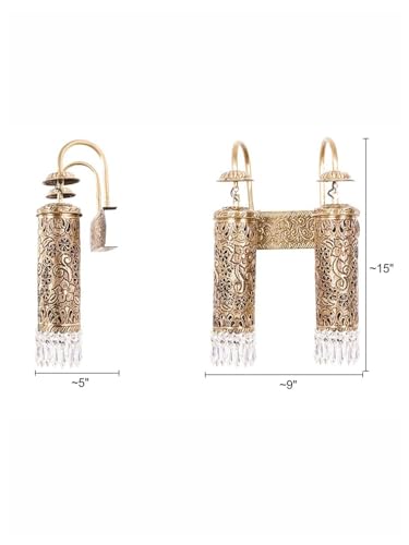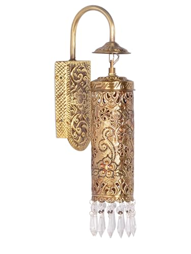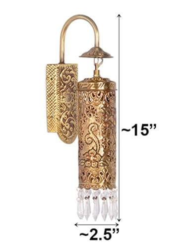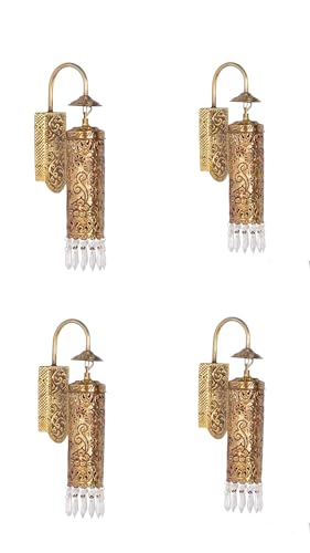 HL HOMELIGHTING Hand Carved Brass & Crystal Cylinder Sconce – Cylinder-Carving Wall Light Decorative Lighting for Living Rooms Wall Ceiling Lamp Balcony Decor, Pack of 4 (Free Bulb)