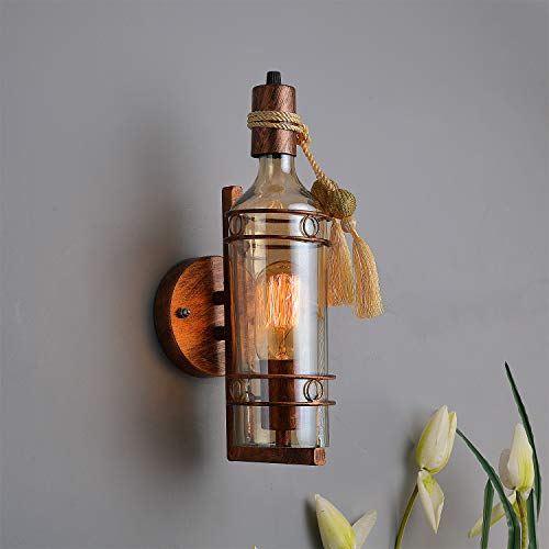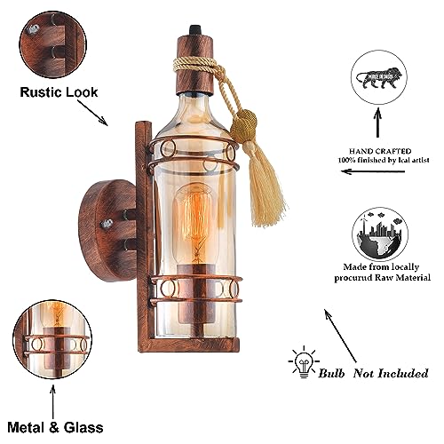 Homesake Rustic, Oil Rubbed Bronze Finish Indoor Vintage Wall Sconce Industrial Lamp Fixture Glass Shade Farmhouse Metal Sconces Wall Bottle (Brown, Gold)