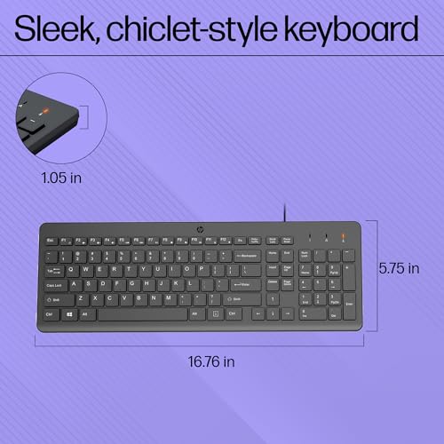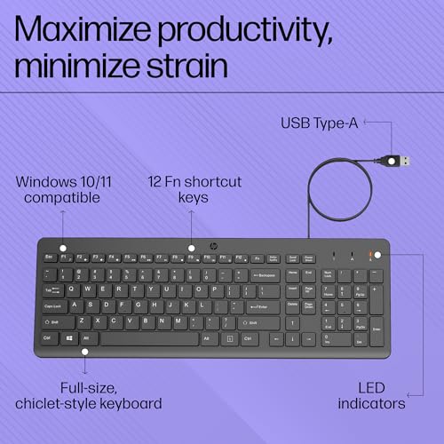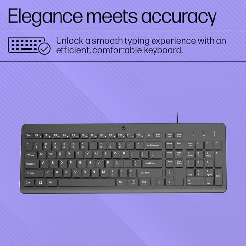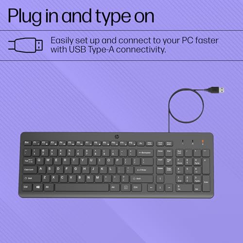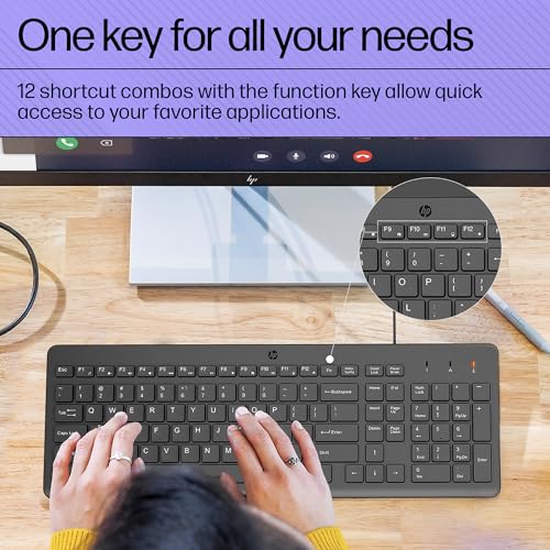 HP 150 Wired Keyboard, Quick, Comfy and Ergonomically Design, 12Fn Shortcut Keys, Plug and Play USB Connection and LED Indicator, 3 Years Warranty