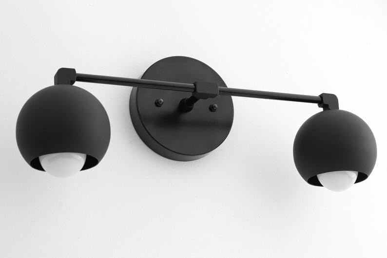 This traditional orb shade vanity light fixture will add a touch of mid-century contemporary flair to your area. Model No. AC-0010 Vanity Lighting for Home – Orb Shade – Bath Light – Sconces – Modern Wall Lighting – Mid Century Bathroom. Standard Medium Base (e26/e27) socket Small Globe G16.5 40 Watt Bulb (Bulbs Not Included)