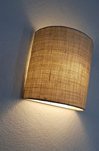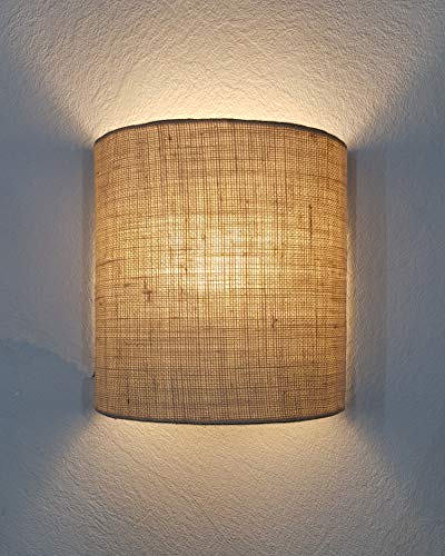 Mufasa Wall Mounted Lamp Lights Half Shade Bedside Fabric Lampshade Sconces- with Holder and Bulb (Brown Jute)