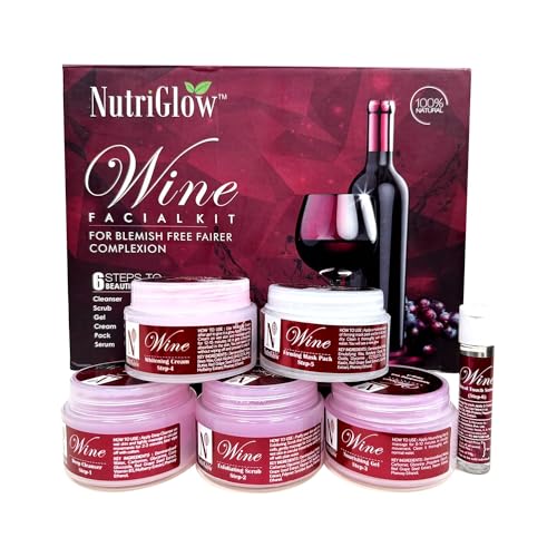 NutriGlow Instant Glow Beauty Wine Facial kit with Goodness Of Red Grape Extracts, All Type of Skin Solution for men & women 260 gm With Free 5 in 1 Face Massager for Facial