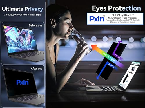 PHOENIX PxIn 14 Inch Privacy Screen Filter – No Eye Strain | Anti Blue Light + Anti Glare | No Dry Eyes | Privacy Screen Protector | Lab Tested