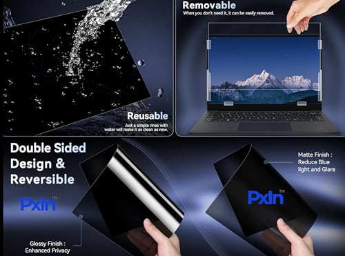 Zero Eye Strain – Package Contents – Each package includes one privacy screen filter, two sets of clear adhesive strips, two sets of slide mount tabs, and a microfiber cleaning cloth. Buy with confidence – located in the US, PxIn specializes in providing best-in-class privacy solutions to individuals, small businesses, corporations, government and educational institutions.