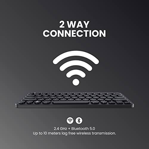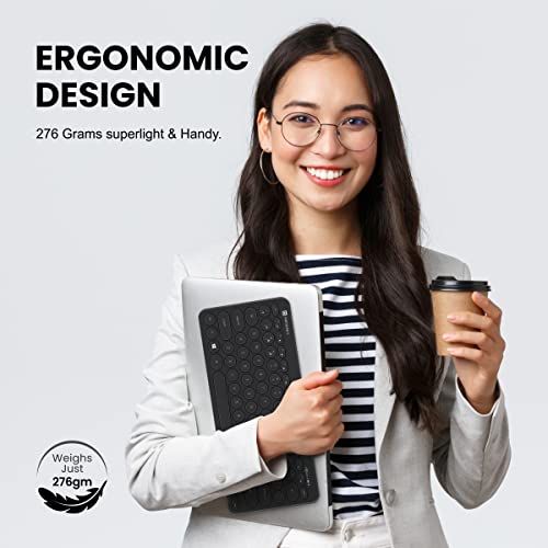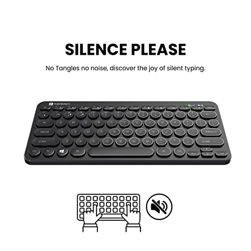 Portronics Bubble Multimedia Wireless Keyboard 2.4 GHz & Bluetooth 5.0 Connectivity, Noiseless Experience, Compact Size, Shortcut Keys Function for iOS iPad Air, Pro, Mini, Android, Windows Tablets PC Smartphone(Black)