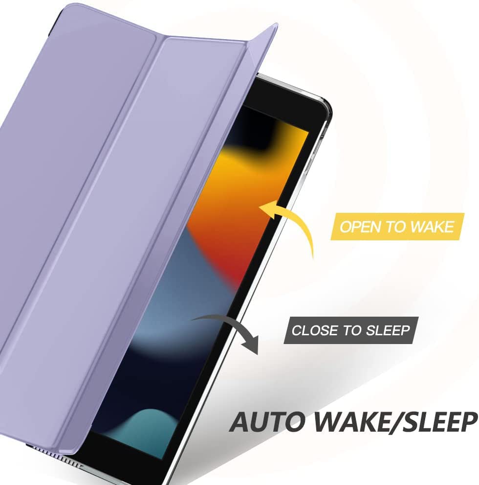 ProElite Smart Flip Case Cover for Apple iPad 10.2″ 9th Gen (2021) 8th Gen/7th Gen, with Stylus Pen, Translucent & Hard Back, Purple