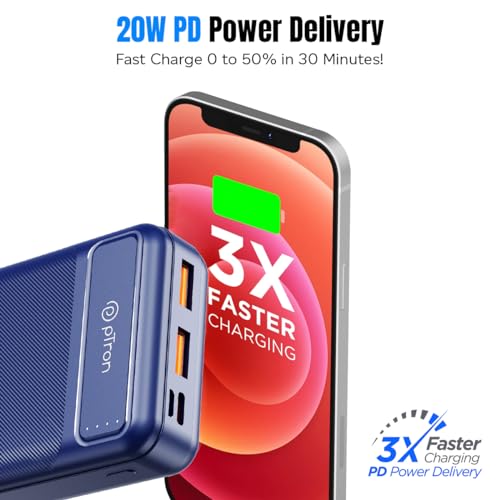 pTron Dynamo Spark 10000mAh 22.5W Nano Power Bank, Compact Size Fast Charging, Supports VOOC/Wrap/Dash USB Charging, 20W PD Fast Charging, 3 Output Ports, 2 Input Ports & BIS Certified (Blue)