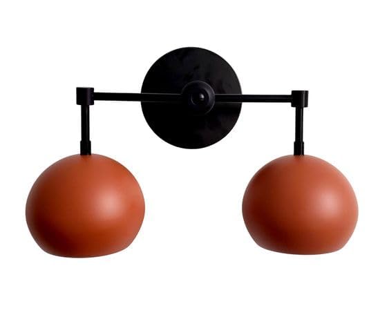Q.S.P Loa Double Ball- Terra Cotta/Black Wall Sconce Bathroom Venity Lamps Model No QSP00164 Function & Decoration Lamp Bulbs are not included. Modern Up & Down Matt Terra Cotta & Black Polish Wall Sconce Vanity Lamp Nice For Any Room Decorations 2 Bowl Bulb Modern Mid Century Industrial Orb Light 2 Dome Bathroom Lighting With Stick Mirror Light Unique Lighting Wall Lamp.