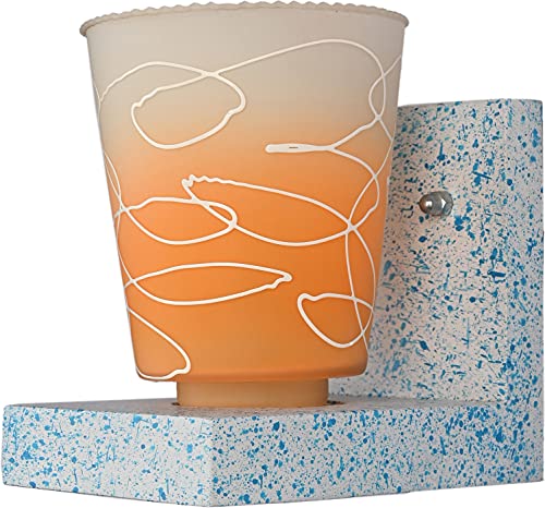 In The Box:- 2 Colorful Designer Glass Lamp Shade, 2 Wooden Wall Fitting With Holder And Connecting Wire, 2 Wall Fixture & 4 Screw, Material- Glass, Wood, Color- Orange, White, Blue, Size- 10.5 x 15 CM