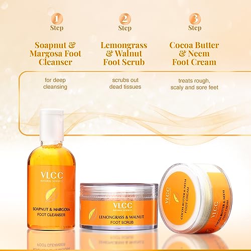 VLCC Pedi Glow Foot Care Kit – 100g + 200ml | Keeps Your Feet Clear, Soft, and Smooth | A Combo of Foot Cream, Foot Scrub, Foot Cleanser, and Foot Spray.