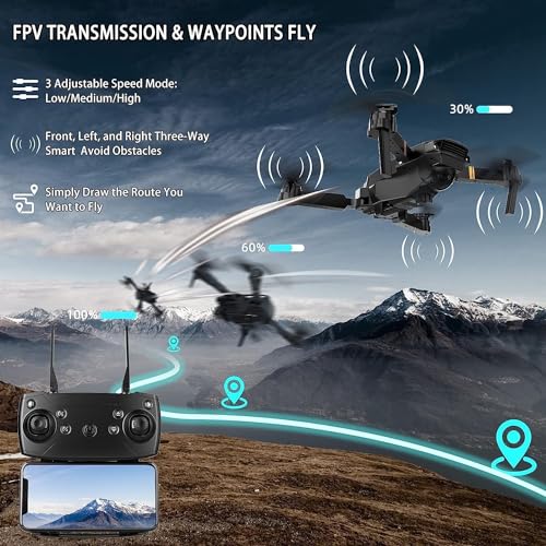 One fully charged intelligent battery can support 20 minutes flight time, moreover, this package comes with two batteries, which means 40 minutes joyful flight time is available. 3 speed modes (low/medium/high) make this suitable for beginners and experts. You could even try switching different speed modes when the drone is in flight for more fun. One-button take-off and landing, fast and easy control, the drone can fly stably in the air, which is very suitable for beginners. With an advanced flight system, the drone can fly along the path you set on the app, which lets your flying creativity can be maximized Real-time transmission can simultaneously record and show the beautiful scenery captured by the drone, allowing you to enjoy the visual feast anytime, anywhere